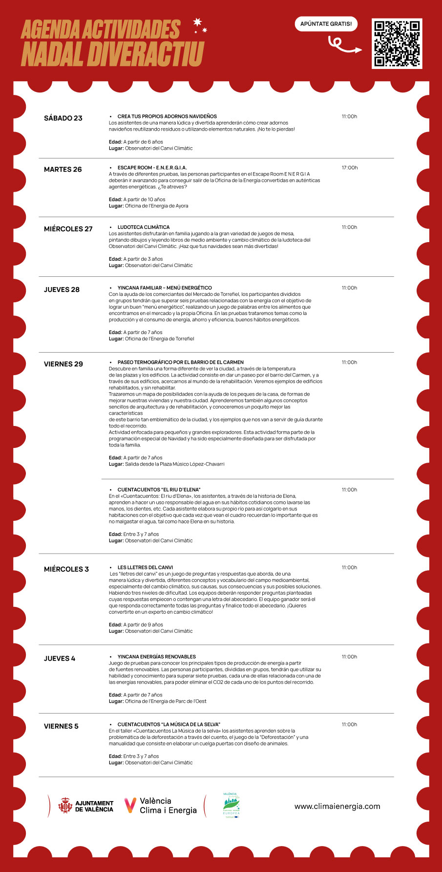 Podeu consultar les activitats i inscriure?s en línia en la web https://climaienergia.com/nadal-diveractiu-2023/